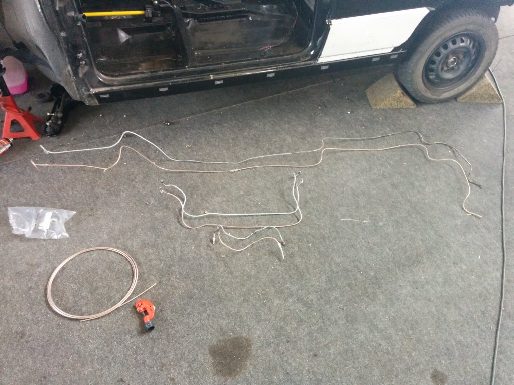 -HA überholt (75er Achse umgebaut) mit Cunifer Bremsleitung, Stahlflex, PU Buchsen, neue Handbremsseile, Bremsenschutzblech vom Acki, neu gelackt (Chassilack OH vom Korrosionsschutzdepot - geiles zeug)