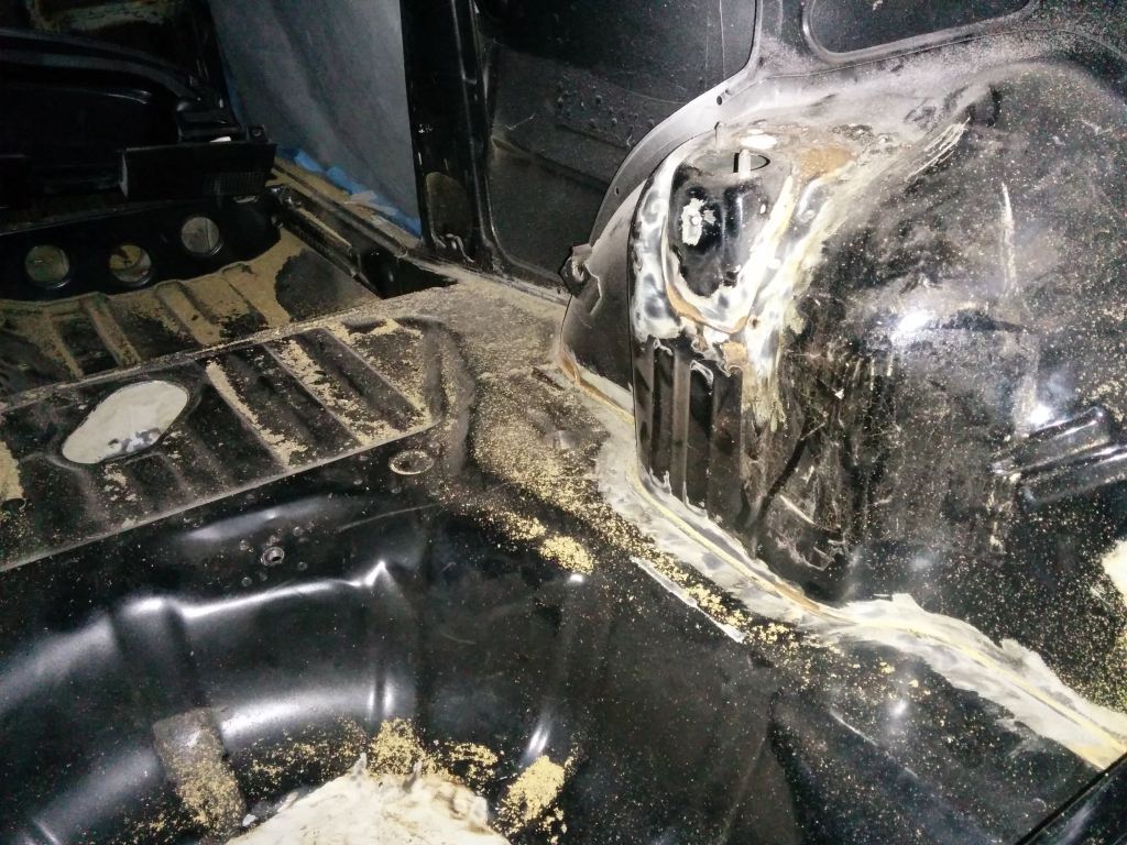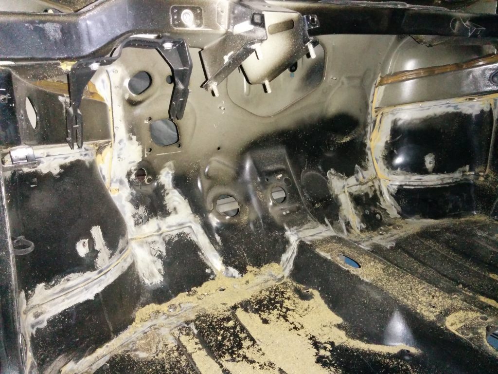 • Dichtungsmasse an den Blechüberlappungen entfernt (Unterboden, Motorraum, Innenraum)