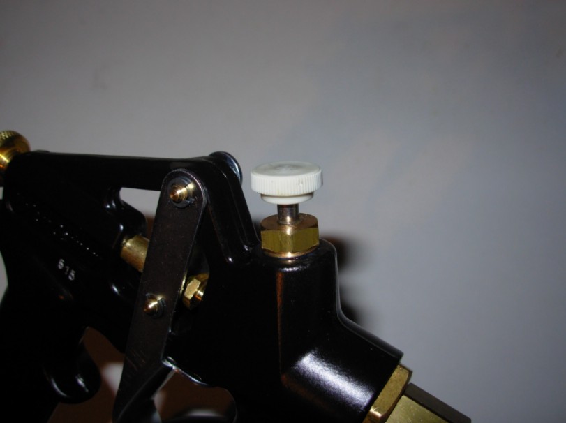 Der trockenversuch bestätigt mir meine umarbeit der Pistole, bei geschlossenem Ventil kommt der Druck nur über den Druckbecher zu stande und bei geöffnetem Ventil ist die frühere Funktionsweise wieder hergestellt.