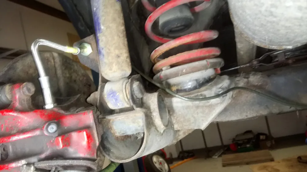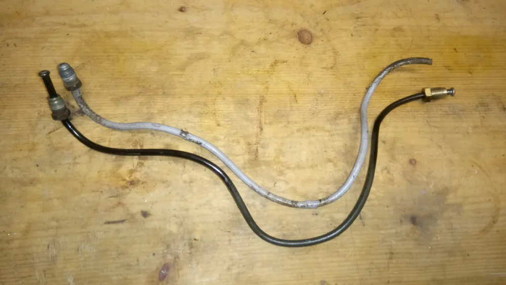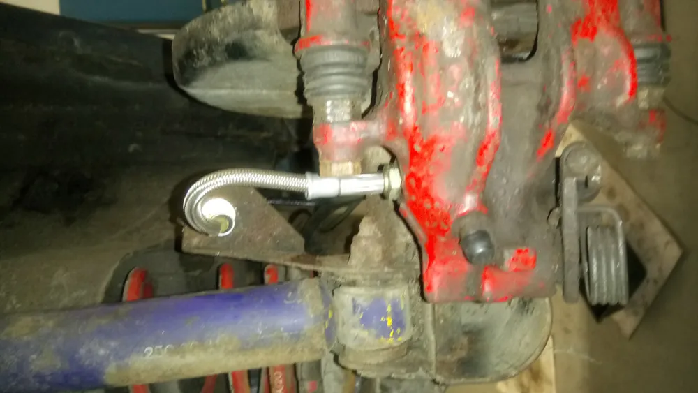 • Nachdem ich auf die Bremsleitungen 2 Wochen warten musste konnte ich am Freitag endlich das Bremssystem wieder komplett zuammen bauen. Vorne blieb alles wie gehabt (da ich es nicht abbekommen habe) und hinten kamen Stahlflexleitungen rein und die neuen Bremsleitungen.