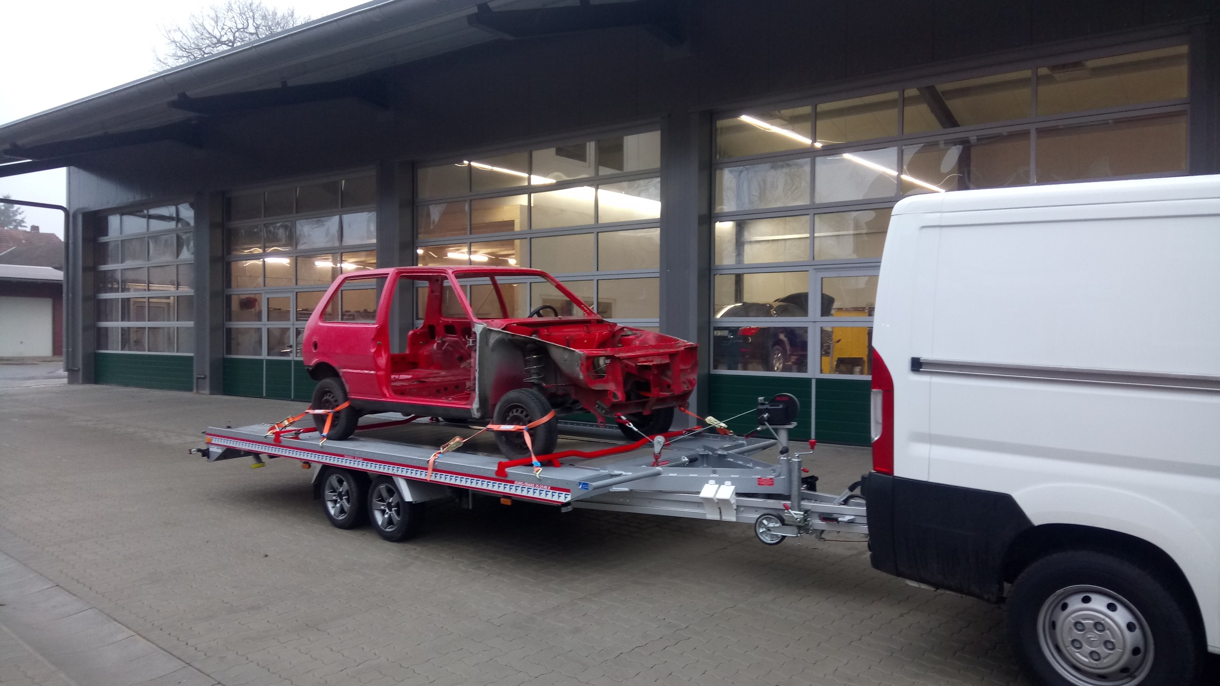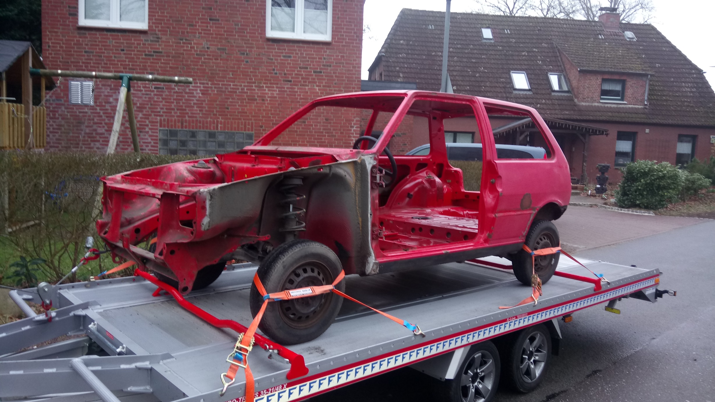So, heute früh wurde es auch bei mir ernst. Mein UNO ging zum Karosseriebauer. Jetzt wird er erst mal sandgestrahlt und dann schauen wir was alles gemacht werden muss bzw. was ich alles möchte...
