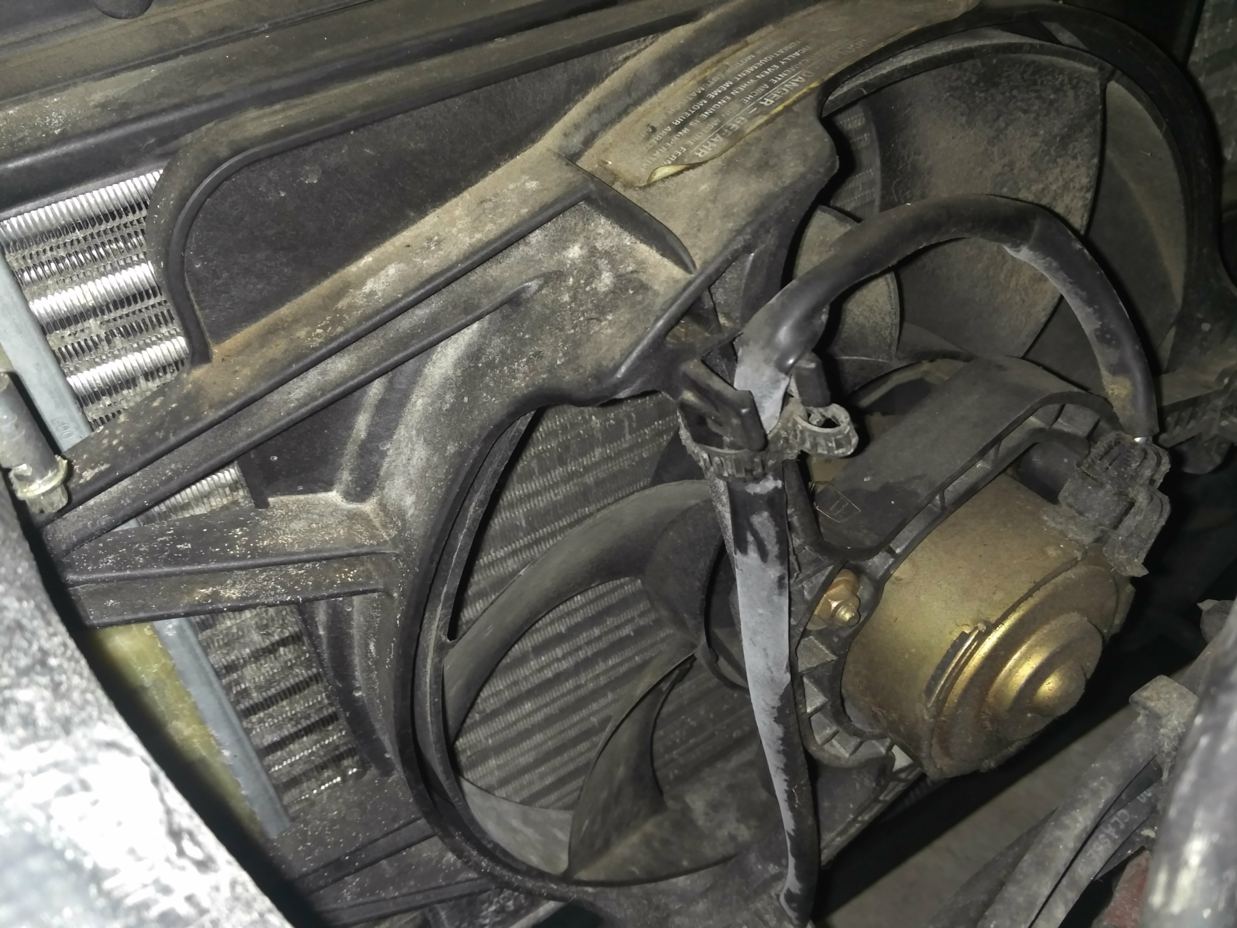 Der Kühler selbst sieht gut aus (siehe Foto) - ich hatte nur Sorge wegendem grün/weissen Zeug das offensichtlich aus den Schläuchen austritt.