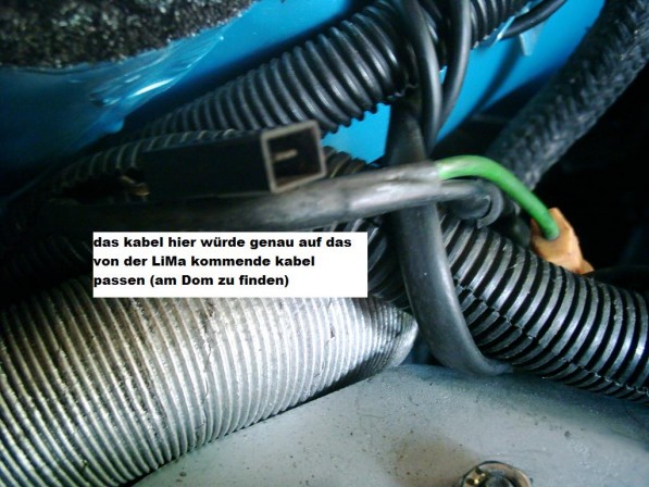 Bei den anderen Kabeln, da ist normalerweise ein Stecker für die Einspritzdüsenkühlung und da ist gleich das Kabel für die Ladekontrolllampe mit in der Nähe. Ich mache einfach mal Bilder ![]()