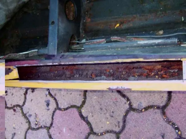 ich glaub die bilder sagen alles, neues bodenblech und ein neuer aussenschweller wird fällig. innenkante wurde schon mal einigermassen sauber gemacht.