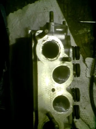 • Ist normal! Wenn du in die Kanäle reinschaust, links und rechts siehste so'ne Art "Klebestelle" da wurde der Guß wohl zusammen gepappt. Das im Brennraum ist nur das Ende davon.