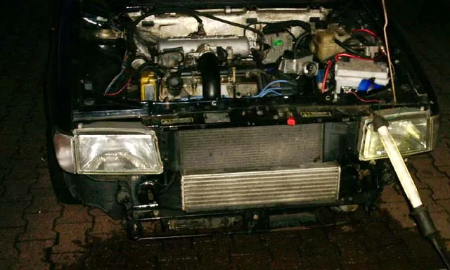 Er hat den LLK über der Stoßstange vor den Wasserkühler gehangen.