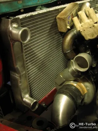 Ansaugung für´n Turbo ist soweit fertig und der Kühler hat seine anschüsse, muss noch geschweißt werden