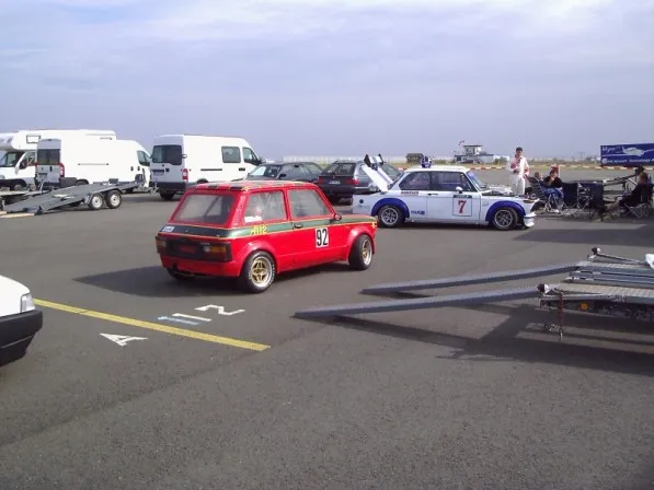Leider musste Rainers A112 mit ein Motorschaden ausscheiden und ist auf ein Polo G-Lader umgesteigen (war eigentlich nur das Schlußlicht da die konkurenz ca. 200PS hatte), nach 3 Runden hat der Polo auch den geist aufgegeben (Reifenplatzer, Bremse ging nicht, Ladeluftschlauch geplatzt)