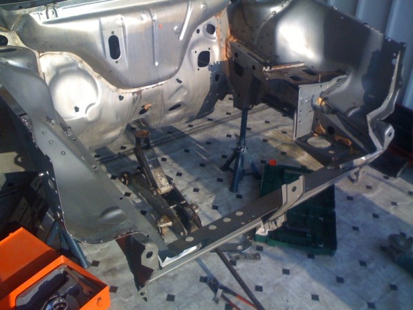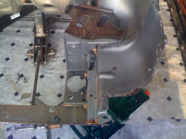 Die komplette Karosserie (vorm Schweissen) wurde in ein Becken mit einer Speziallauge getaucht, nach 24 Stunden hat man nun das Ergebnis von einer komplett entlackten Karosserie (Rost wird ebenfalls entfernt)
