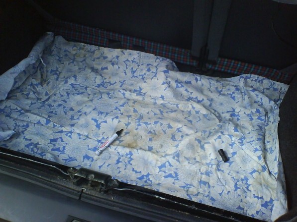 nachdem ich dann mit ca.60km/h über die landstrasse nach hause gefahren bin, wollte ich es wie ein profi machen. einige von euch, so habe ich es gesehen, fertigen kofferraumplatten mit pappe an, also als vorlage. ich hatte keine pappe zur hand und so entschied ich mich ein altes bettlaken zu nehmen (funktioniert übrigens echt gut)