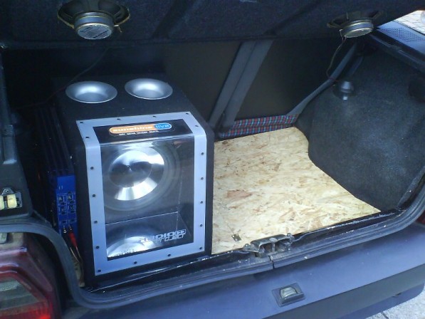 also nachdem ich dann heute so gegen 4 meine anlage unter dach und fach gebracht hatte, machte ich mir sorgen um meinen sub, denn dieser konnte bei eventuell ruppiger fahrweise;) hin und her wackeln und sogar kippen. nicht gerade ein schöner gedanke.