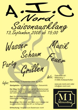 so, jetzt isses offiziell - der aic nord macht noch einen saisonabschluss fuer den sueden deutschlands und oesterreich (natuerlich duerfen weiter wegwohnende auch kommen ).
