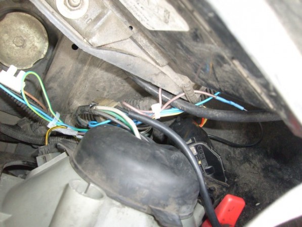 Im Innenraum das bei mir blaue Kabel in den Motorraum führen die anderen beiden an Masse und Lichtplus anlöten oder Klemmen.