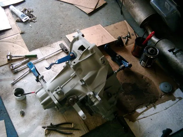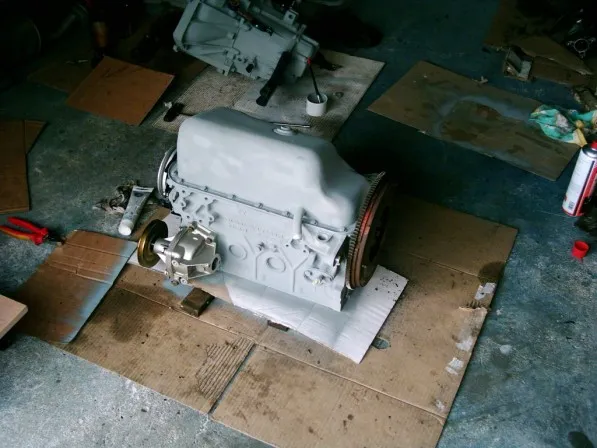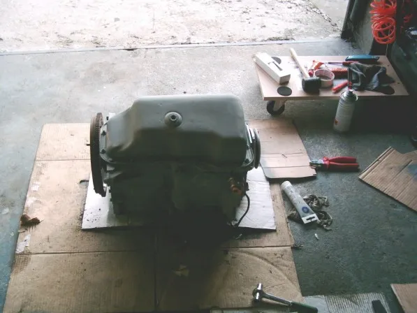 haben das getriebe und den motor mit zinkfarbe angemalt...weil; heller farbton..ich kann so, sofort sehen wenn irgendwo öl runterläuft...naja...vielleicht kommt ja irgendwenn ne andere farbe.....vielleicht nächsten winter....keine ahnung...