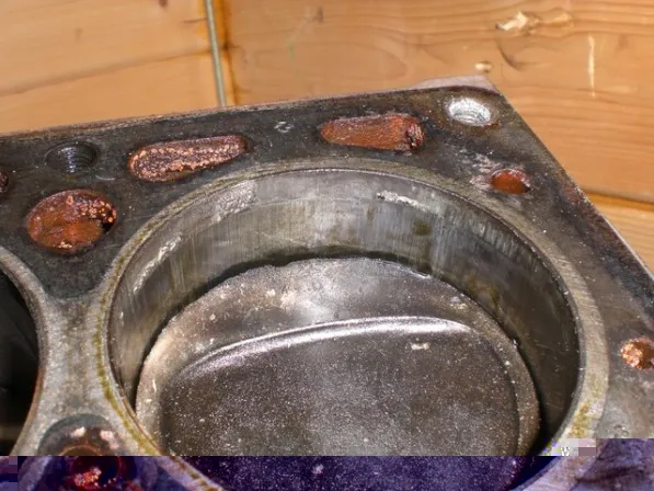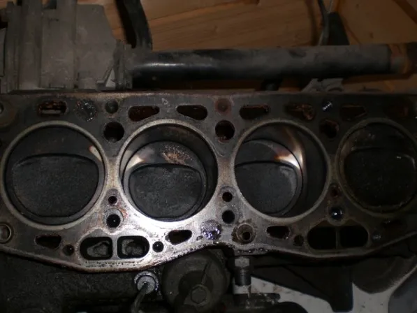 So also bei Zylinder 4 ist richtig was los! Die Kanten des Kolbens total zerdrückt! Metallische Ablagerungen im oberen Bereich der Laufbuchse! Ich würde sagen der is hin! Ansonsten kann man den Kreuzschliff gut erkennen das ist glaube ich ein gutens Zeichen! Bei den anderen Zylindern ist im Bereich der Zundkerze auf dem dem Kolben immer eine Stelle freigebrannt?????? ![]()