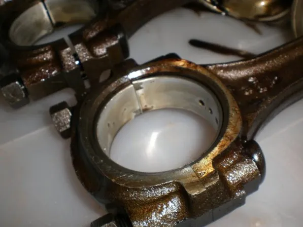 Es kann täuschen aber was ist mit den Pleuellagerschalen passiert? Deckel verdreht/vertauscht? Weil die am Rand so "abgeschliffen" aussehen.