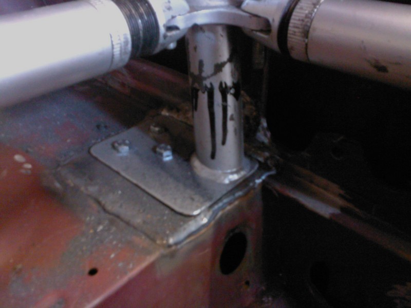 Nach dem das geschaft war hab ich den Käfig reingehangen, geguck wo die Platten hin müssen und die Stellen markiert. Dann hab ich die Platten eingeschweißt(bei den Schweißnähten sollte der Käfig nicht rausreißen können.