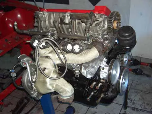 Der originale Lader wurde durch einen GT25R ersetzt, die Kupplung musste einer Sachs Kupplung mit starrer Scheibe weichen.