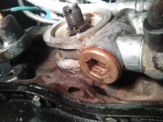 Hab heut Ölwechsel gemacht und wollte gleich noch den Kupferdichtring am Thermostat wechseln weil der süfft...PROBLEM...als ich die Schraube mit dem 17er Innensechskannt rausdrehen wollte ist sie da wo Ölwanne und Block zusammengehen angestosen, sprich die lässt sich nicht ganz rausdrehen...