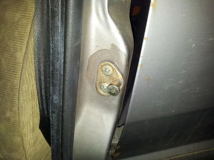 eine Radkappe fehlt. Der Beifahrergurt wurde einfach abgeschnitten. Zum schweißen des linken Schwellers wurde nicht einmal der