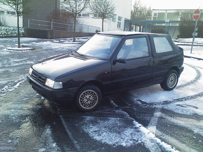 bin am dienstag stolzer besitzer eines uno cabrios geworden! habe meinen 45er ja in 2005 verkauft und hatte mir einen alfa 146 geholt, den ich dann knappe 2 jahre sehr zufrieden gefahren habe! leider wurde er bei einem unverschuldeten unfall zerlegt und mittlerweile habe ich einen alfa 156 2.0 ts! bin also den italienern treu geblieben! nach langer suche bin ich jetzt auf einen fiat uno altro von rr/schweiboe gestoßen und habe diesen dann auch gekauft! es ist ein 45 1.0 ie und hat 95000km gelaufen! leider hat er eine sehr miese und unschöne ausstattung, aber das wird gerade ausgebessert! rost habe ich absolut keinen entdecken können, auch lackmäßig sieht man ihm seine 19 jahre ncht an!