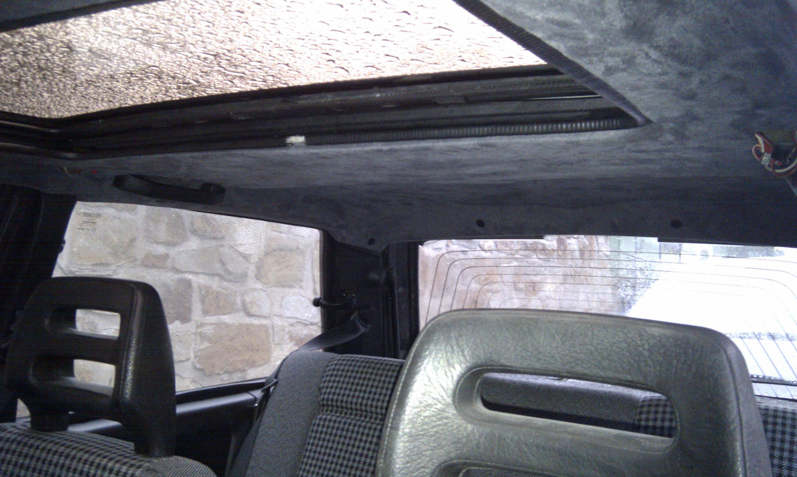 Da der Dachhimmel noch vom Vorgänger total verraucht war, hab ich mich dazu entschlossen, das Ding gleich ein wenig zu überholen. Drauf gekommen ist Alcantara, weil komplett in Schwarz sollte es dann doch nicht werden.
