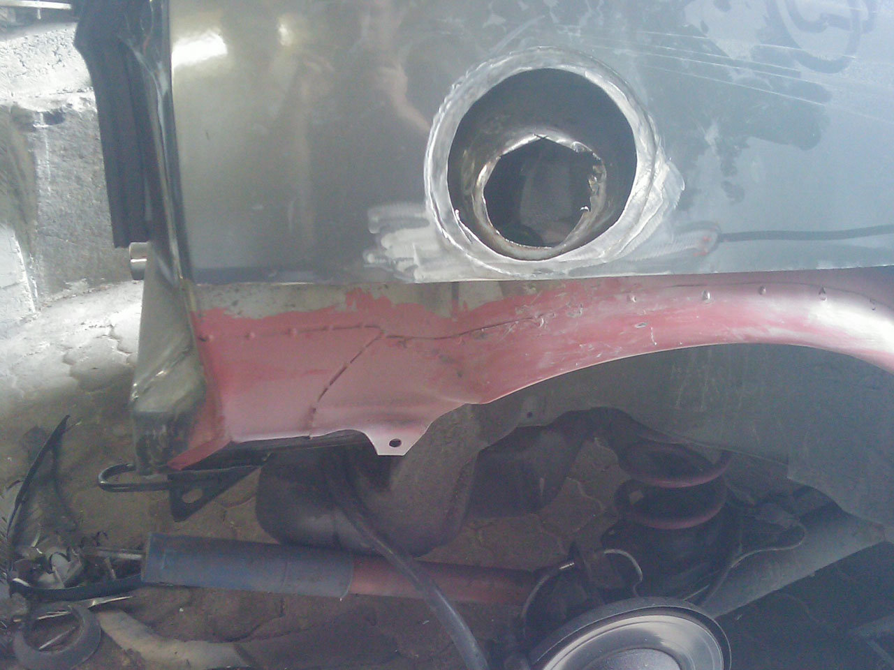 Innenradlauf gewechselt, blöde Reparaturblech reichte natürlich nicht. Das stück am Heck haben wir so gut wie es mit unseren Fähigkeiten ging nach geformt, sieht man dann ja eh nicht mehr. Wundert euch nicht über die verkloppte Tankstutzenführung, die wurde komplett neu gemacht, da ich ein völlig anders gewinkelten Tankstutze verbaut habe (damit wurde auch das leidige Betankungsproblem gelöst).