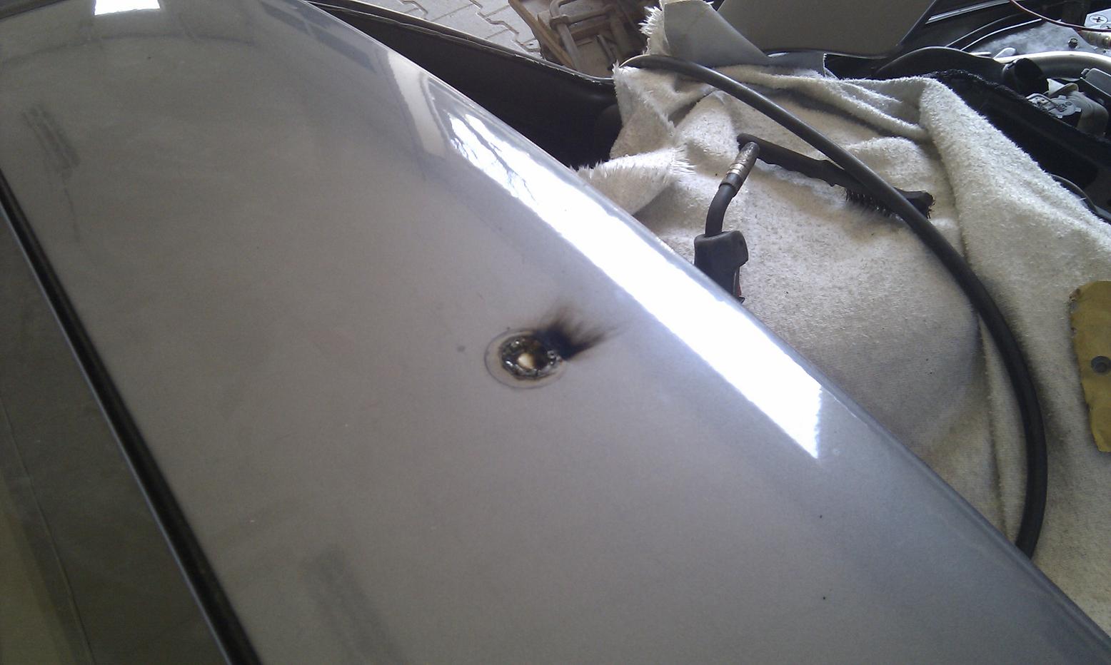 Blödes Antennenloch mit einem kleinen Blech unterlegt und von oben verschweißt